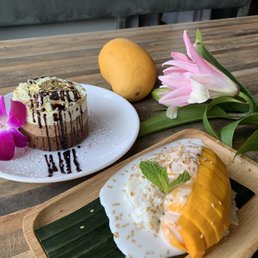My husband and I went here for dinner on a Saturday evening to celebrate my starting a new job. I received a gift card a while ago and we were waiting for a special occasion. We went early, around 4:30. They did not have any tables available for a couple of hours due to being full with reservations, but there were seats at the bar, which was first come first served. We were happy to sit at the bar. The bartender was friendly and helpful and provided us with water right away. He also offered to go over anything on the menu we had questions about as well as make suggestions of his favorites. We had a glass of wine and a beer while we reviewed the menu. Everything looked so good it was really difficult to choose. We decided to get 3 entrees, even though we knew that would be too much food. We just wanted to try a few different things. We ended up getting Chicken Pad See Moa, Thung Takk and Volcanic Beef w/Jasmin Rice. The bartender suggested we try a curry instead of 2 noodle dishes, but the noodles sounded too good not to try. Chicken pad see moa was a noodle dish with very wide noodles, peppers, basil and a spicy sauce. It was delicious. We wavered between that and Beef Pad See Ew, which we will have to get next time. The chicken was tender and the dish was so flavorful. I loved the little bit of char on everything. Thung Takk was our favorite thing that we ordered. My husband loves pad thai, but it's not my favorite and this was an excellent compromise. The noodles were perfectly chewy and the sauce was amazing. We loved the tofu and crushed peanuts. It was pretty spicy, which was great. We will definitely be back to order this again! Volcanic beef was incredibly tender and delicious. The onion rings on top were the best I have ever had. For dessert we ordered mango sticky rice, which I had never had before. I never save room for dessert when I have Thai food. The mango was perfectly ripe and the rice was delicious, but I did not love the sauce and that it was a little salty. My husband loved it though, so I think it was a great dish and just personal preference that it wasn't my favorite. The service was quite good. The only thing is that the food took a while once we had ordered it. Just a heads up there is a 5.5% kitchen fee added to the bill. We will be back again to try more menu items as everything we saw others eating looked and smelled amazing.